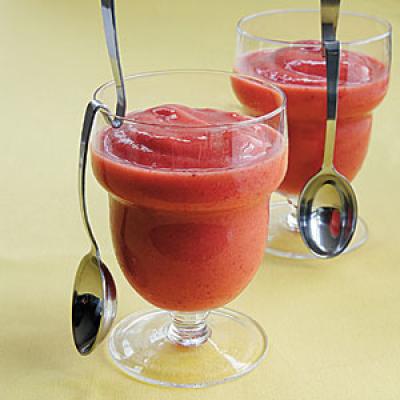 Esta receita pode ser feita sem os frutos estarem congelados. Se estiverem, funcionam também como gelo, o que é ideal para as manhãs quentes de Verão.